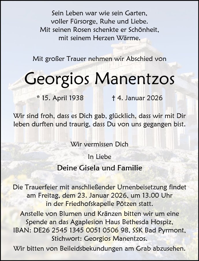 wir wünschen Ihnen für die kommende Zeit viel Kraft und dass es Ihnen gelingt, dankbar auf die positiven Erinnerungen zurückzublicken. Diese Gedenkseite möge Ihnen dabei helfen, Ihre Trauer zu teilen und das Andenken gemeinsam wachzuhalten.