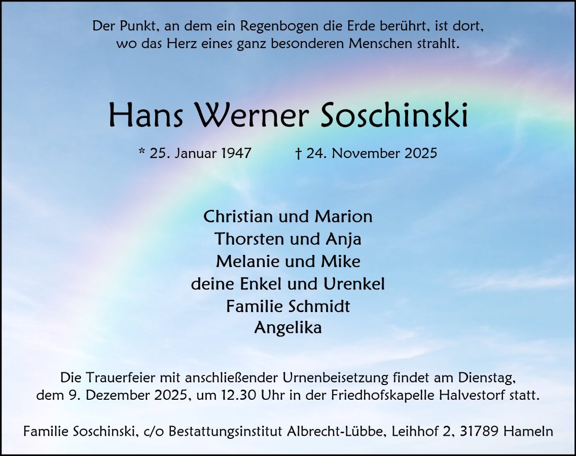 Hans Werner Soschinskigestorben am 24. November 2025