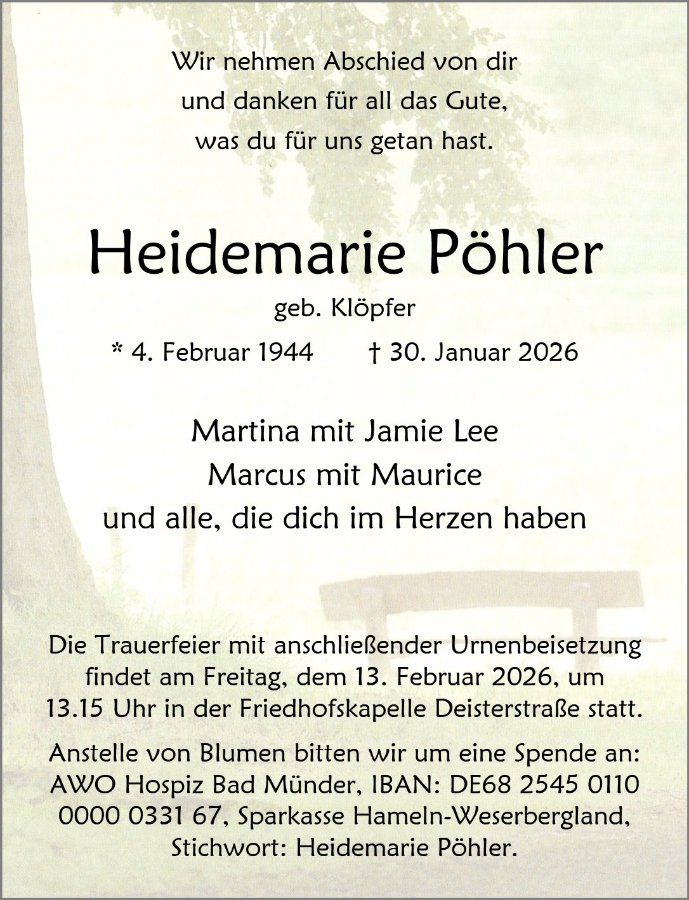 Heidemarie Pöhler geb. Klöpfer