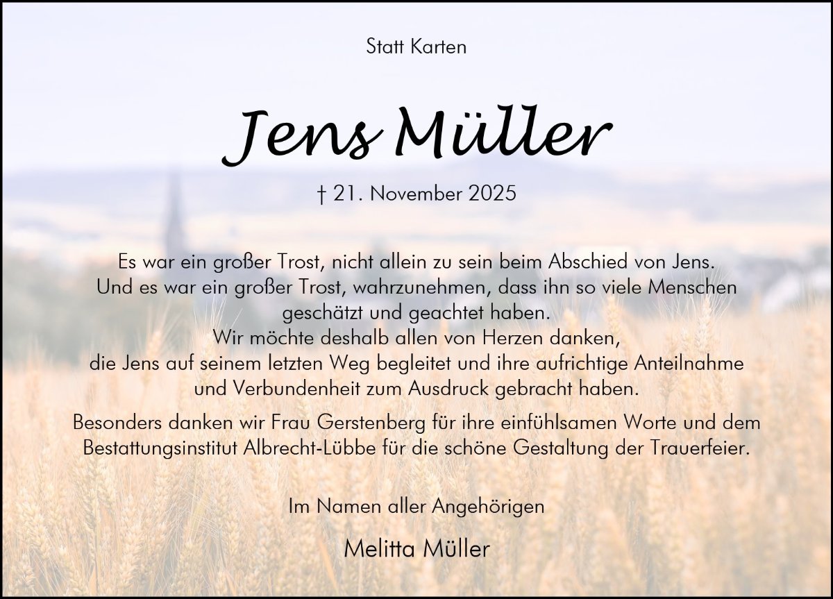 Mit großer Traurigkeit möchte ich mein herzliches Beileid zum plötzlichen Tod von Jens aussprechen.