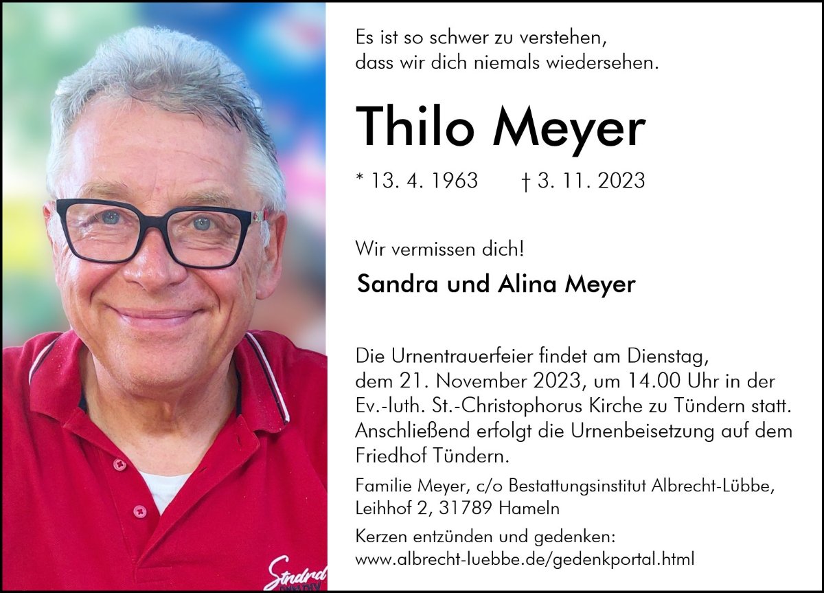 mit großer Trauer habe ich heute erfahren, das Thilo nicht mehr unter uns weilt. Ich habe vor ca. 40 Jahren mit ihm ein Jahr lang die "Stube" bei der Bundeswehr geteilt. Trotz der widrigen Umstände hat mir sein Humor, sein "Zuhören können", sein Einfallsreichtum und seine Begeisterungsfähigkeit so manchen Tag gerettet. Sein herzhaftes Lachen kann ich jetzt noch hören.
