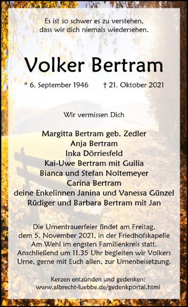 Volker Bertramgestorben am 21. Oktober 2021